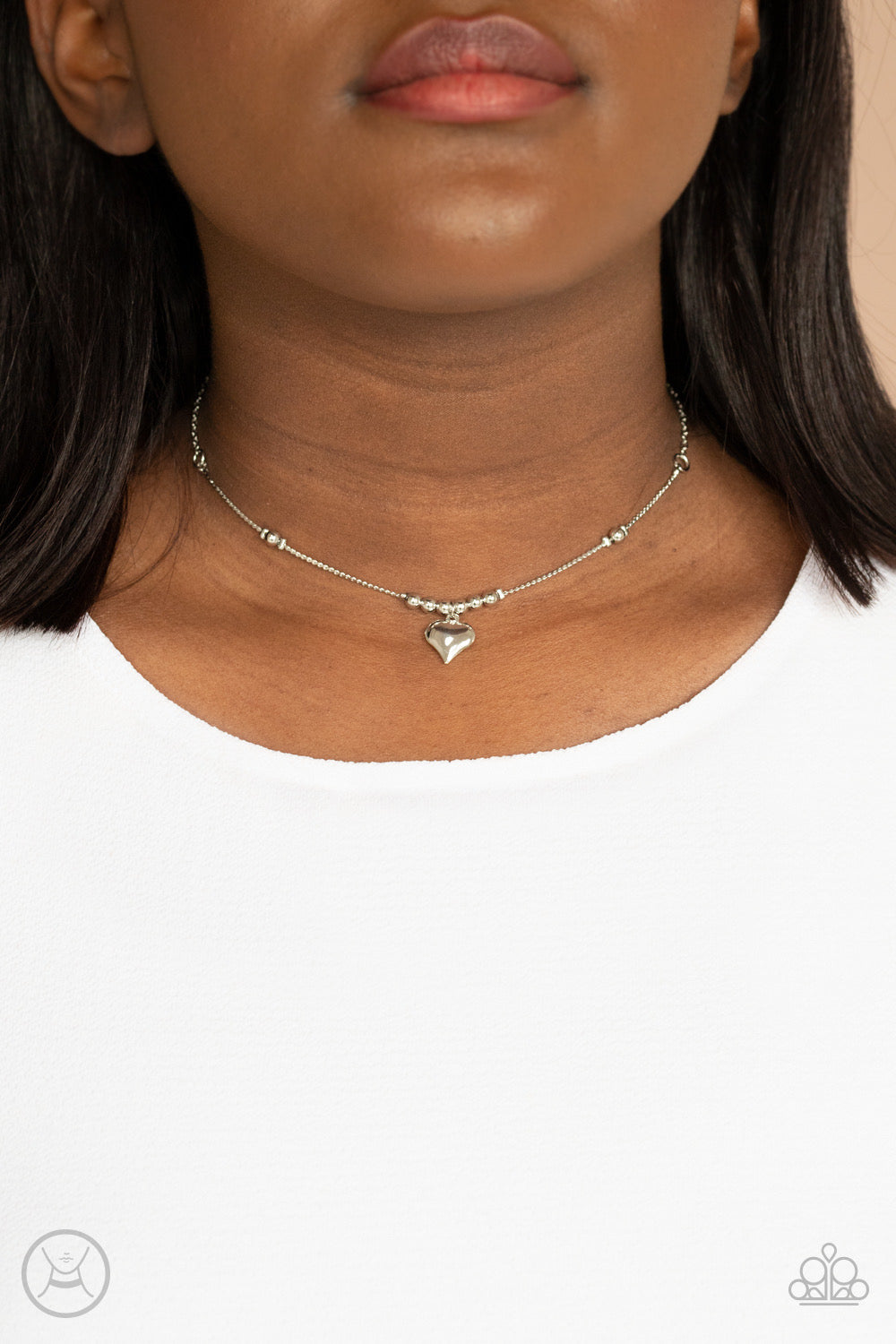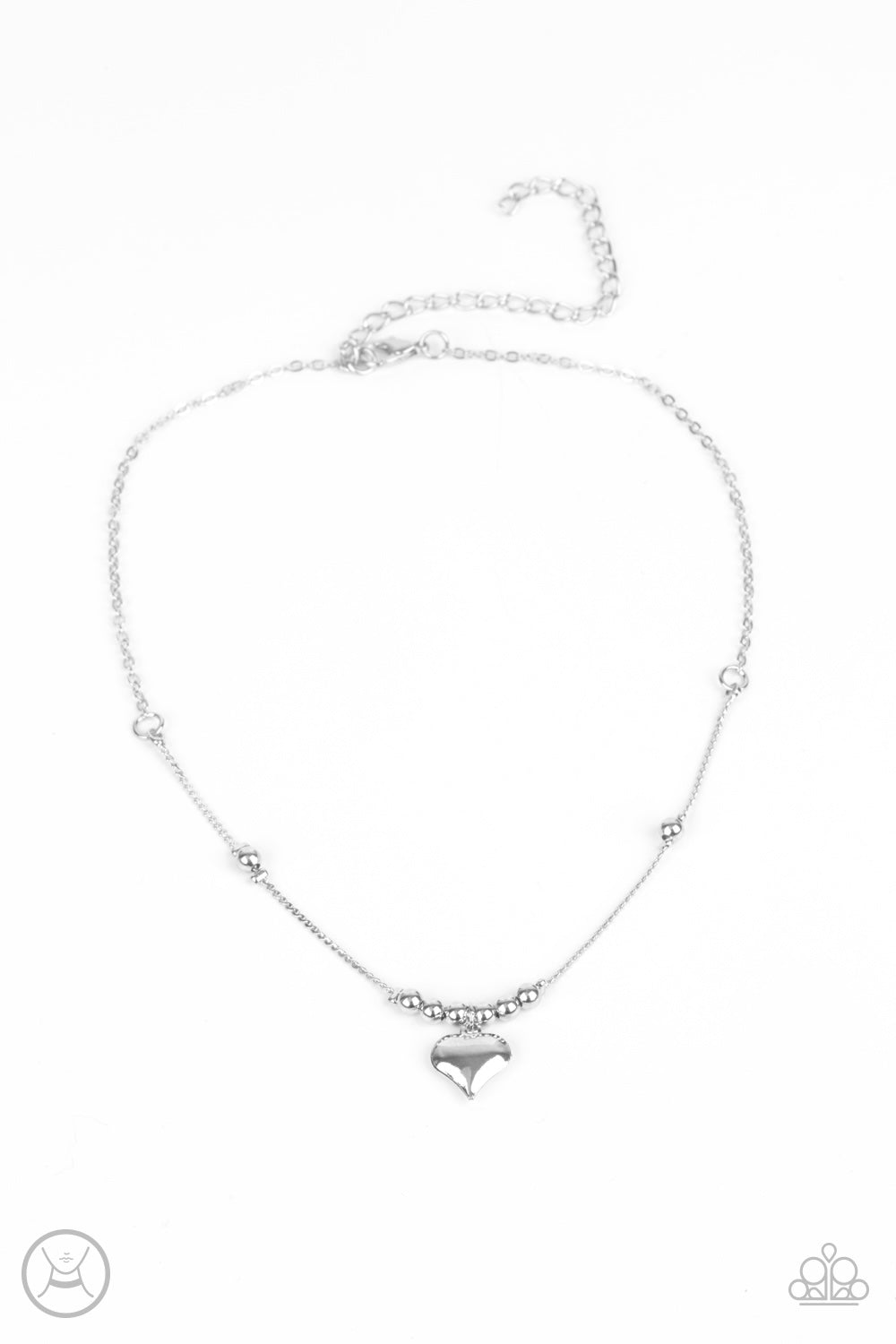 Infused with dainty silver beads, a charming silver heart dangles from a wire-like chain around the neck for a flirtatious look. Features an adjustable clasp closure.