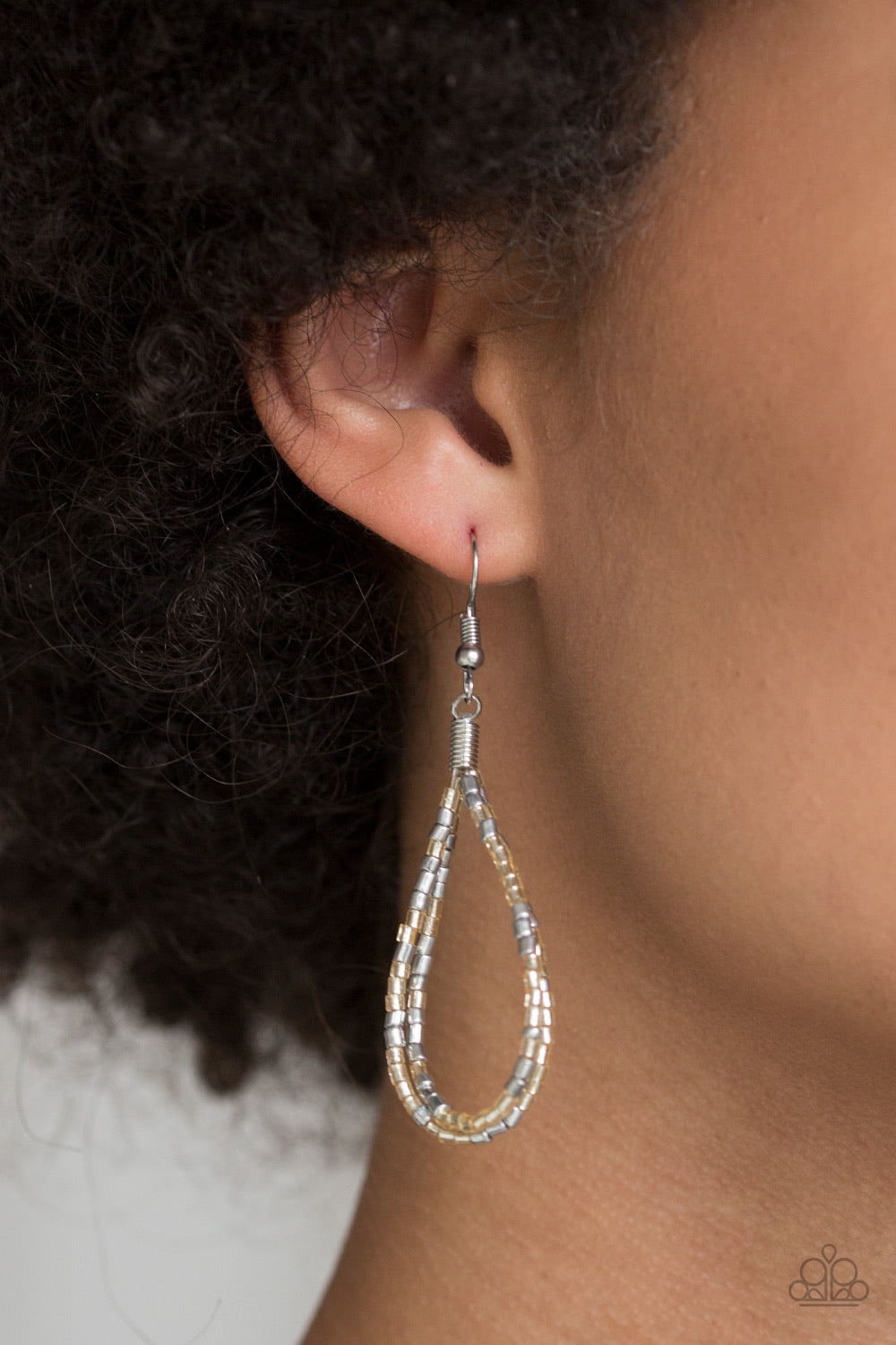 Strand after strand of metallic gold and silver seed beads fall together to create a bold statement piece. Features an adjustable clasp closure.