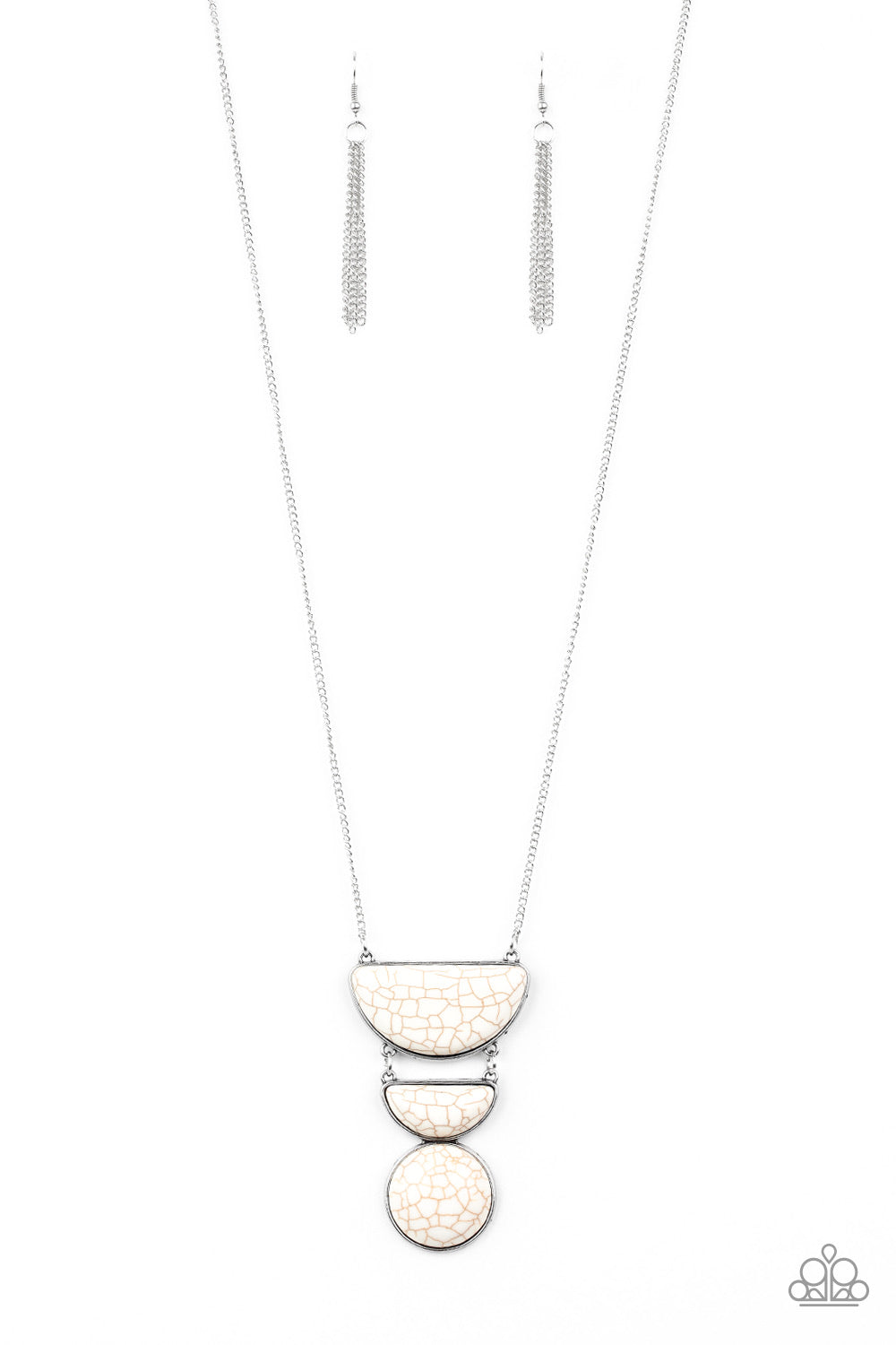 Chiseled into tranquil half-moon and round shapes, refreshing white stone pendants connect down the chest for a seasonal look. Features an adjustable clasp closure.