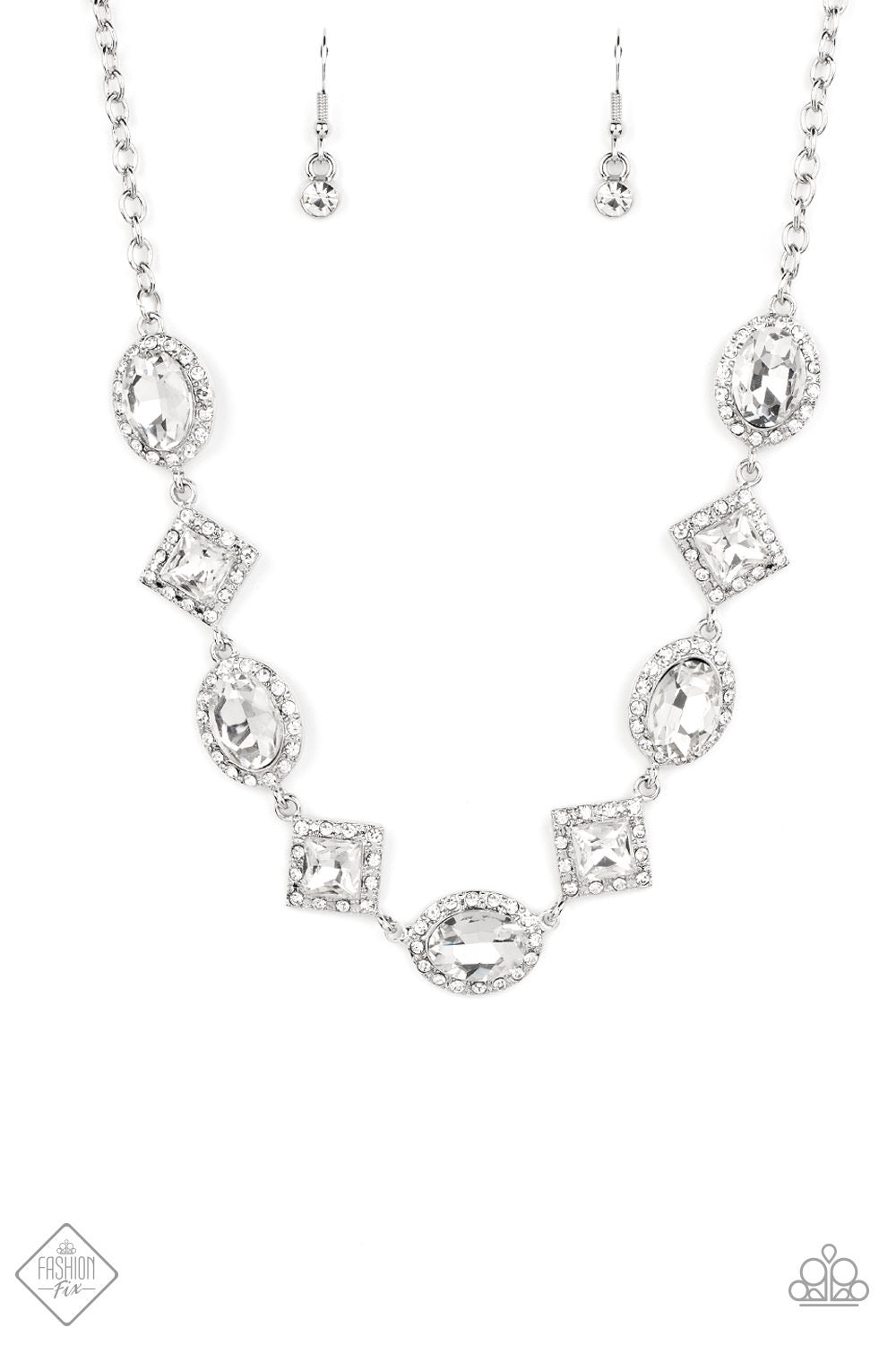 Dazzling white rhinestones, in both oval and square cuts, fall along the collar in an alternating pattern. Each gem is bordered by tiny white rhinestones, amplifying their sparkle, with the square-cut gems tilted on a point to maximize their impact. Features an adjustable clasp closure.