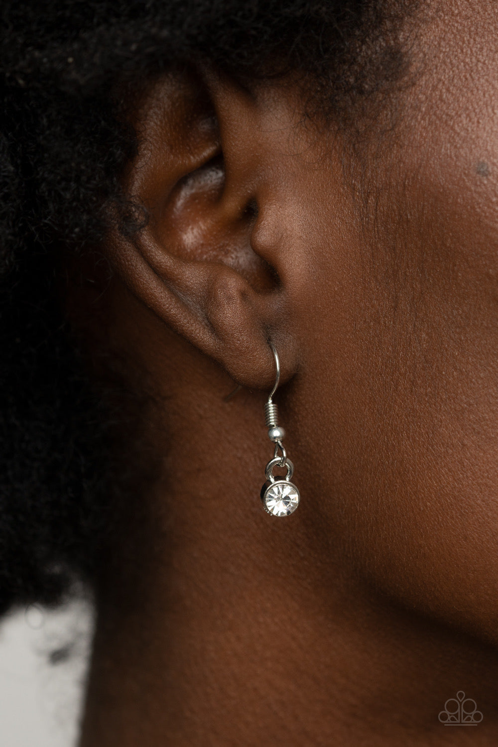 An oversized Cerulean rhinestone teardrop is pressed into the center of a silver frame bordered in white rhinestones, creating a glamorous pendant below the collar. Features an adjustable clasp closure.