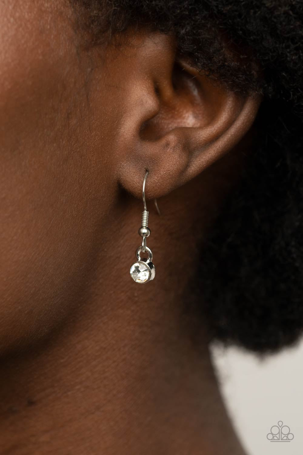 An oversized pink rhinestone teardrop is pressed into the center of a silver frame bordered in white rhinestones, creating a glamorous pendant below the collar. Features an adjustable clasp closure.