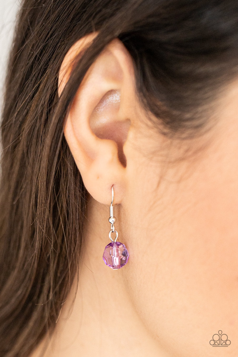 Varying in shape and opacity, a mismatched collection of light and dark purple crystal-like beads drip from the shimmery silver chains, creating an enchanted layered fringe below the collar. Features an adjustable clasp closure.
