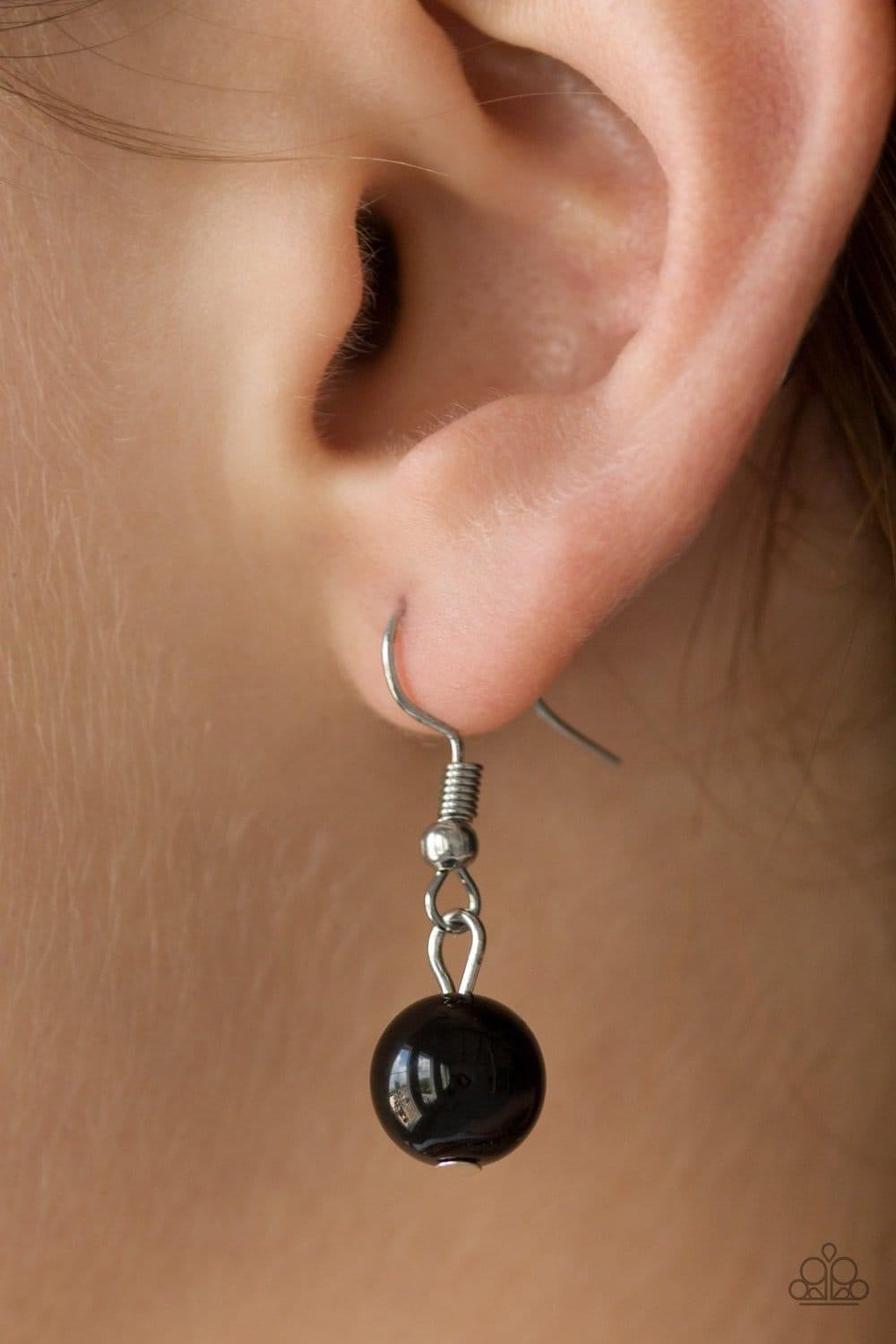 Featuring round and asymmetrical shapes, shiny silver and black beads swing from the bottom of a bold silver chain, creating a flirtatious fringe below the collar. Features an adjustable clasp closure.