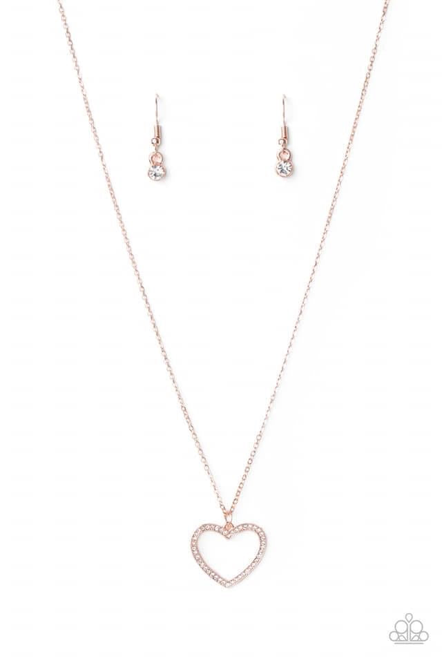 Encrusted in sparkly white rhinestones, an airy rose gold heart frame swings from a dainty rose gold chain below the collar for a romantic look. Features an adjustable clasp closure.