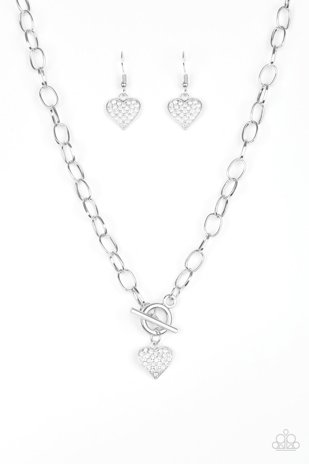 Encrusted in glassy white rhinestones, a dainty silver heart swings from the bottom of a glistening silver chain for a classic look. Features a toggle closure.