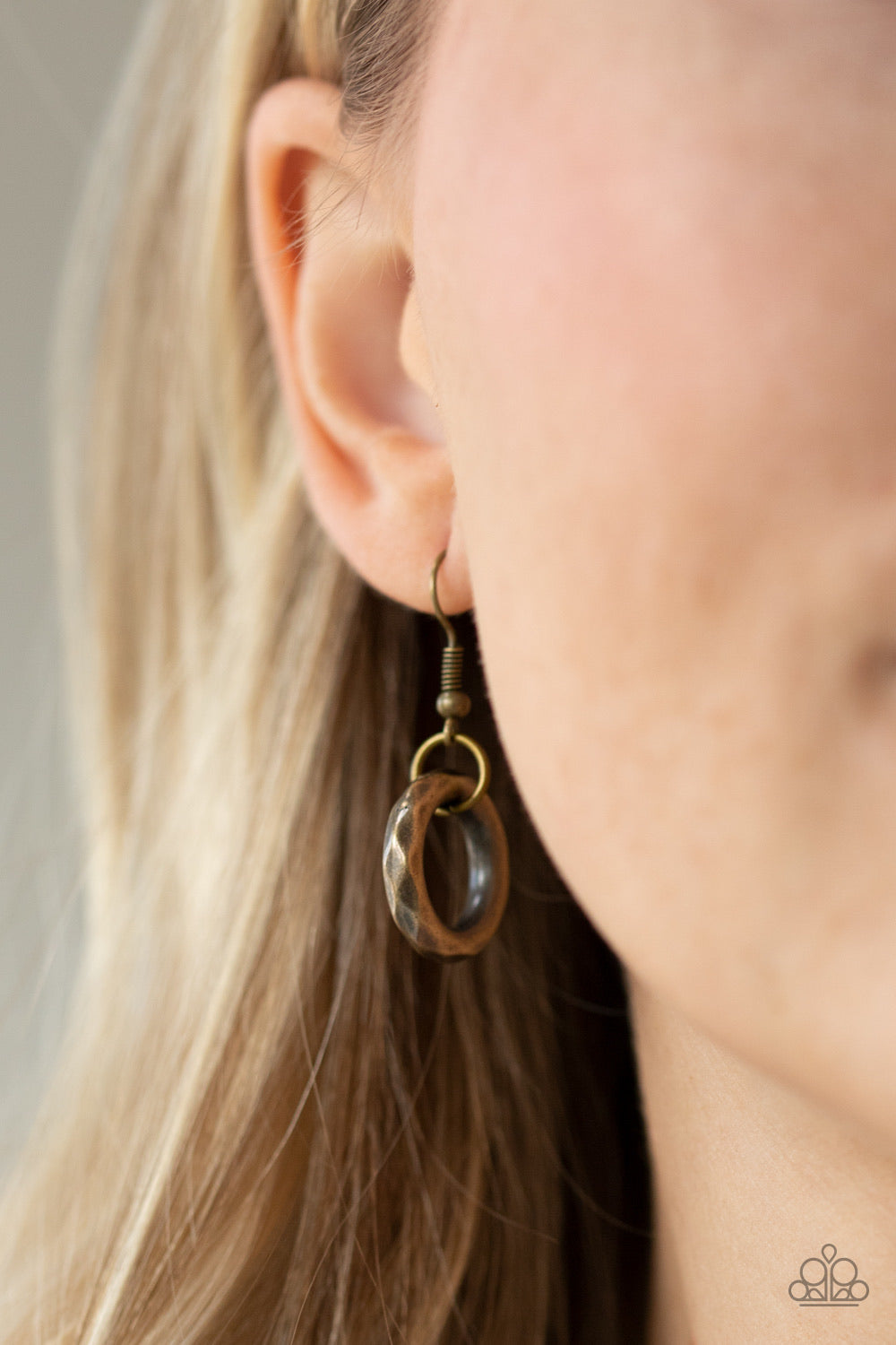 Gradually increasing in size, a collision of faceted tin finished silver, gunmetal, and brass rings slide along a classic brass chain below the collar for a bold industrial look. Features an adjustable clasp closure.