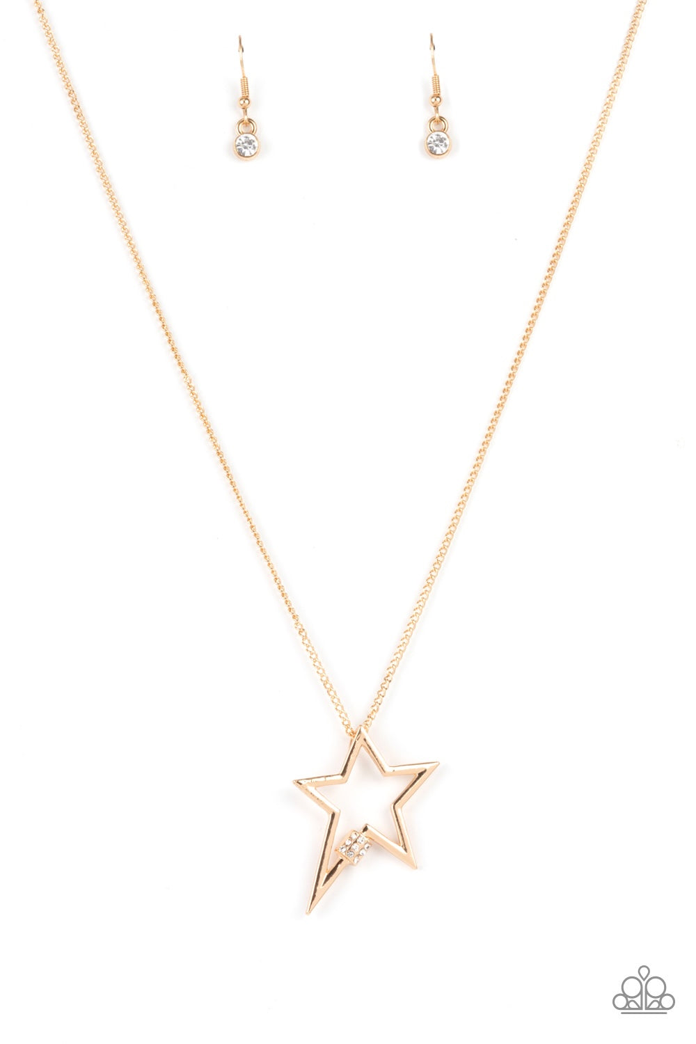 Infused with a dainty white rhinestone beaded accent, a striking gold star glides along a shiny gold chain below the collar, creating a stellar pendant. Features an adjustable clasp closure.