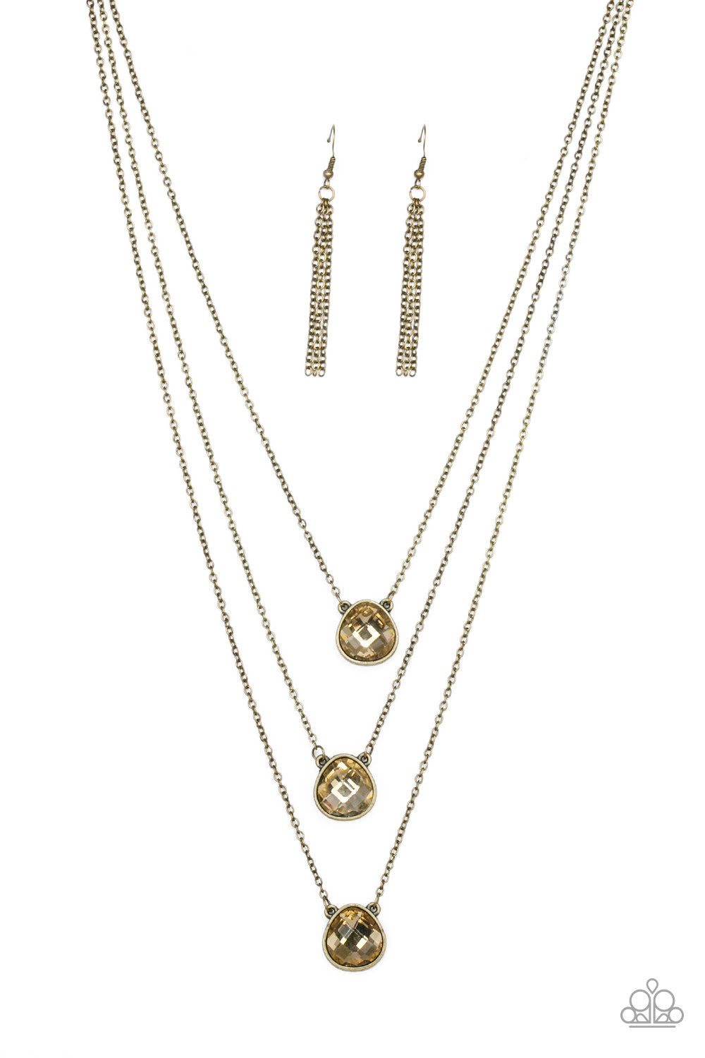 Featuring sleek brass frames, imperfect teardrop gems layer down the chest in a refined fashion. Features an adjustable clasp closure.