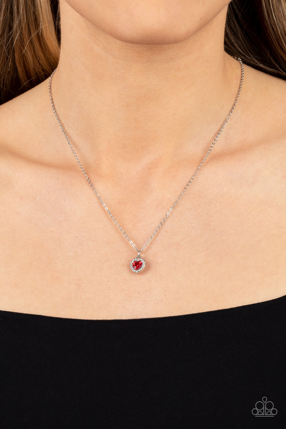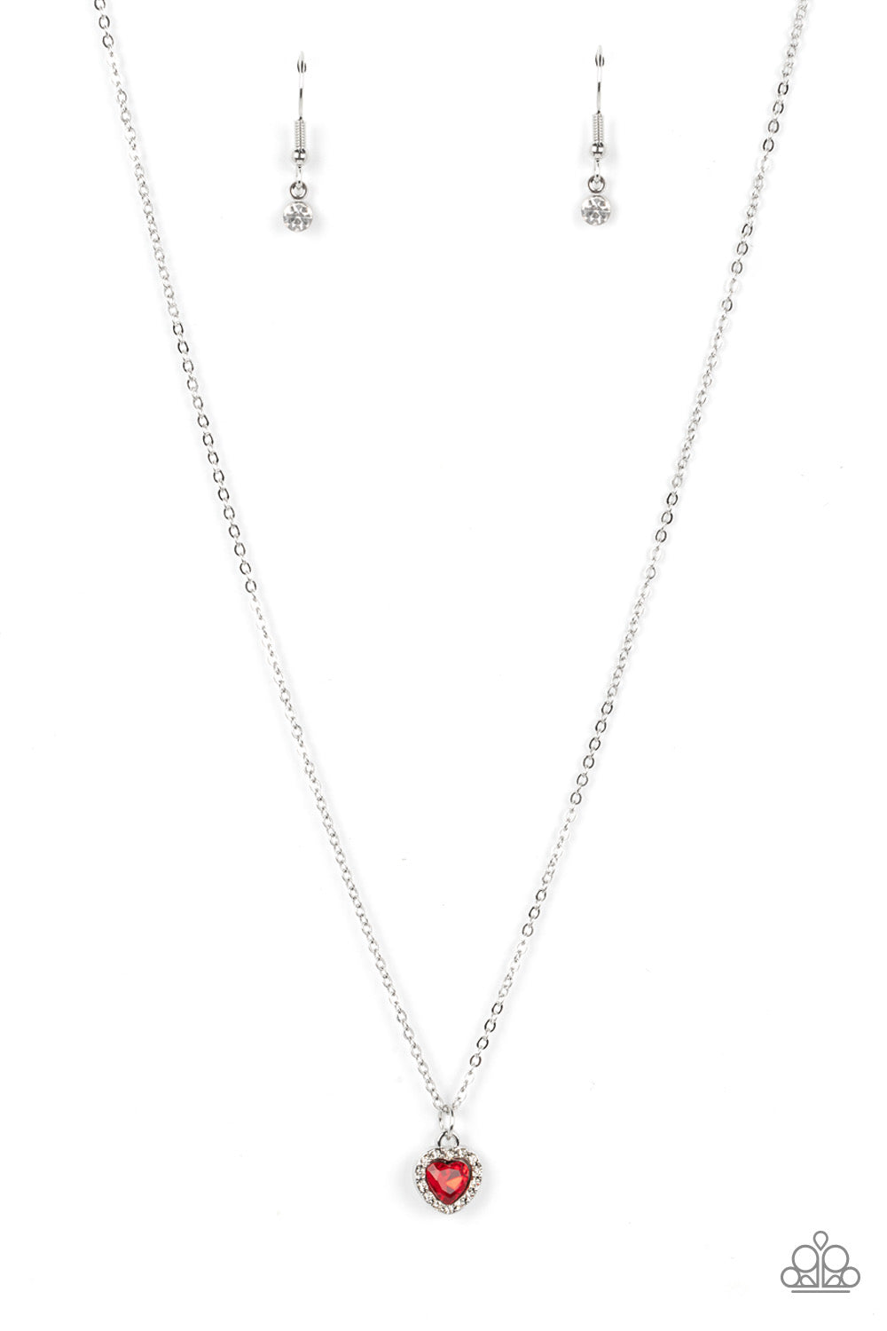 Bordered in glassy white rhinestones, a dainty red rhinestone heart sparkles along a dainty silver chain below the collar for a flirtatious fashion. Features an adjustable clasp closure.