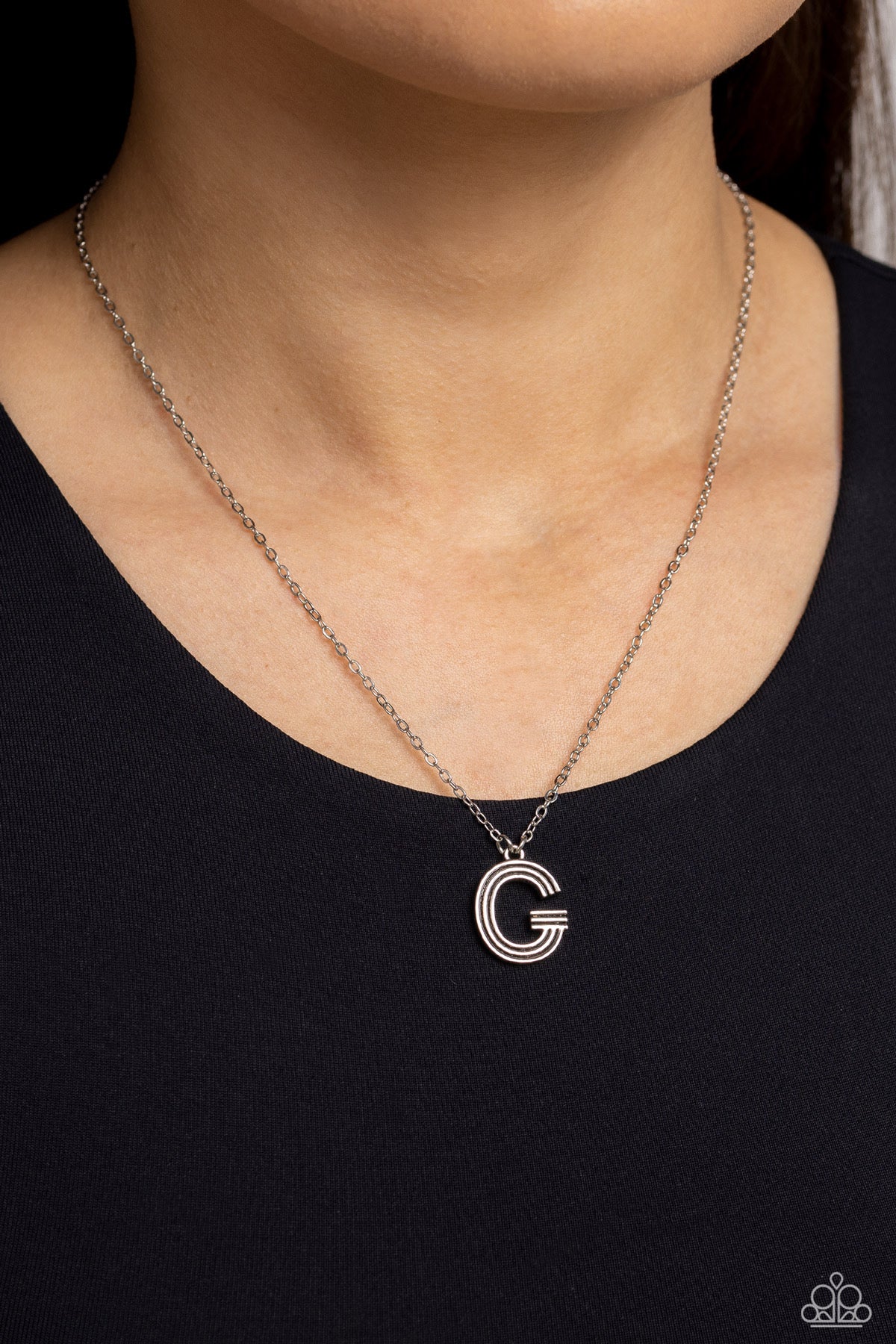 Etched in linear texture, a silver letter "G" hovers below the collar from a dainty silver chain, for a sentimentally simple design. Features an adjustable clasp closure.