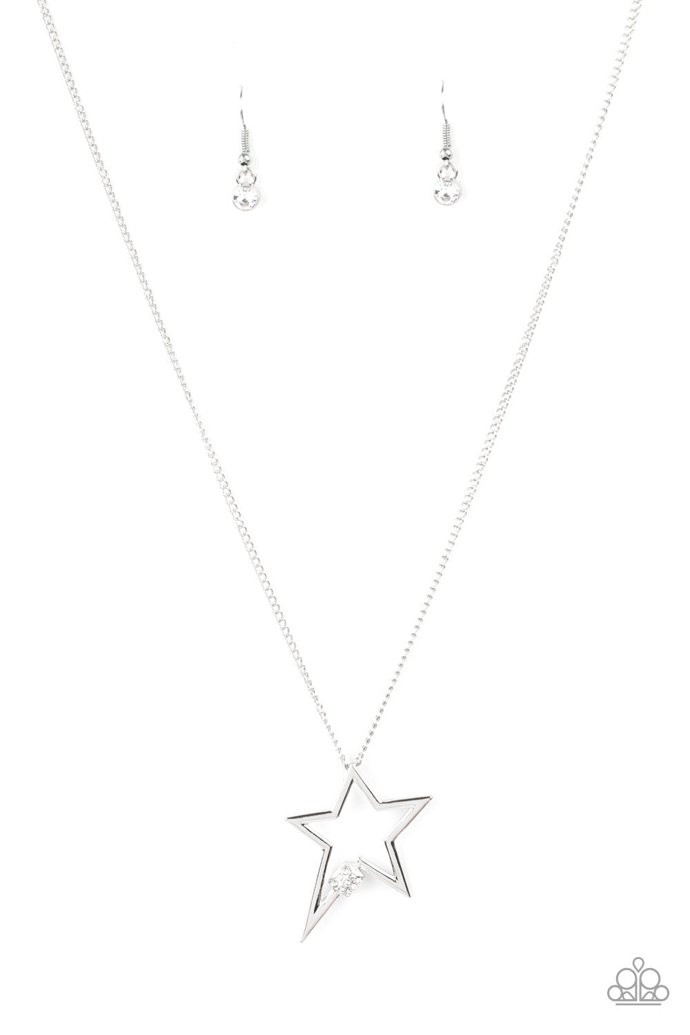 Infused with a dainty white rhinestone beaded accent, a striking silver star glides along a shiny silver chain below the collar, creating a stellar pendant. Features an adjustable clasp closure.