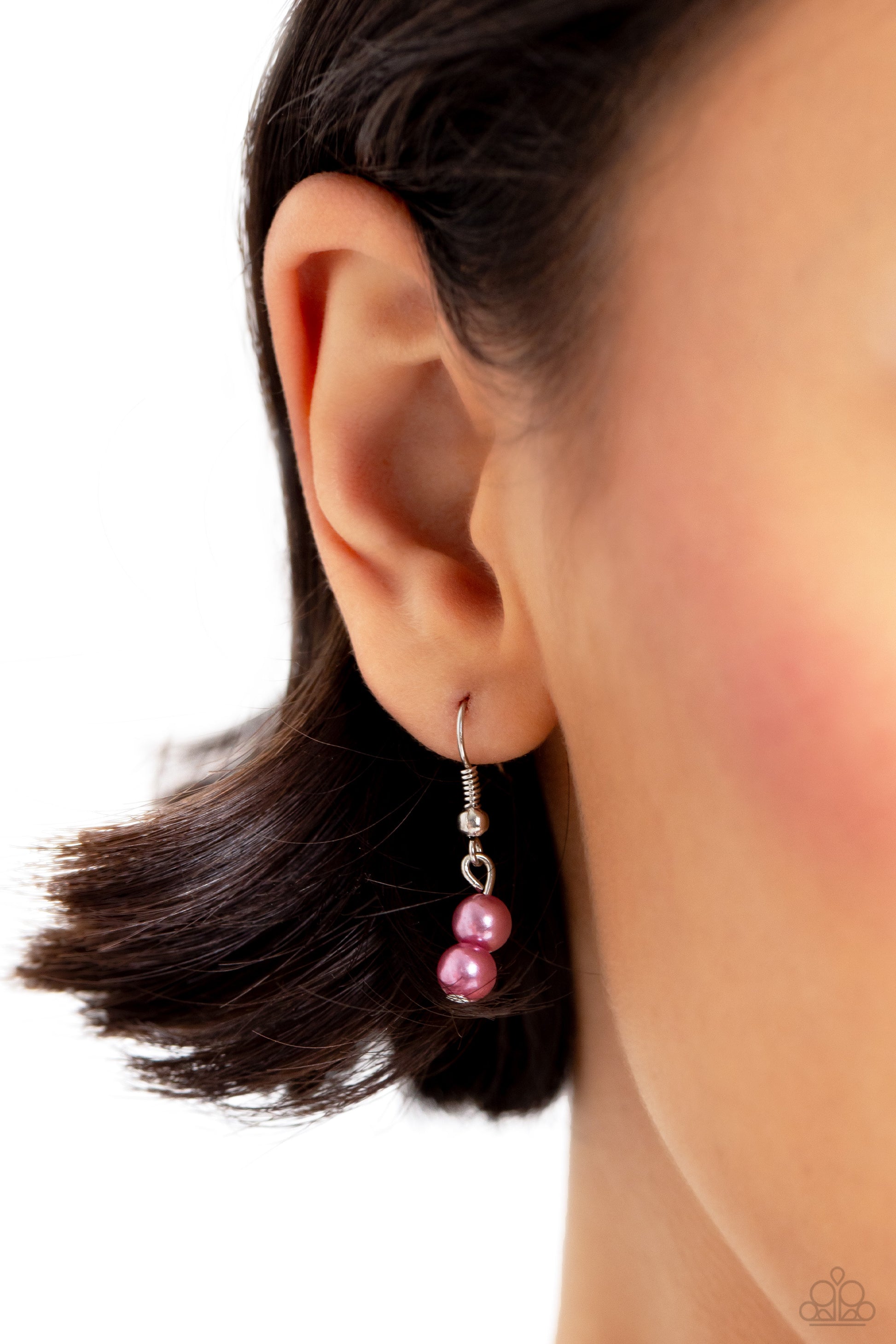 Dainty multicolored pearls and silver beads trickle along an assortment of silver chains, creating shimmery layers across the chest. Two exaggerated light orchid pearly teardrops cascade from the bottom of the design for additional eye-catching detail. Features an adjustable clasp closure.