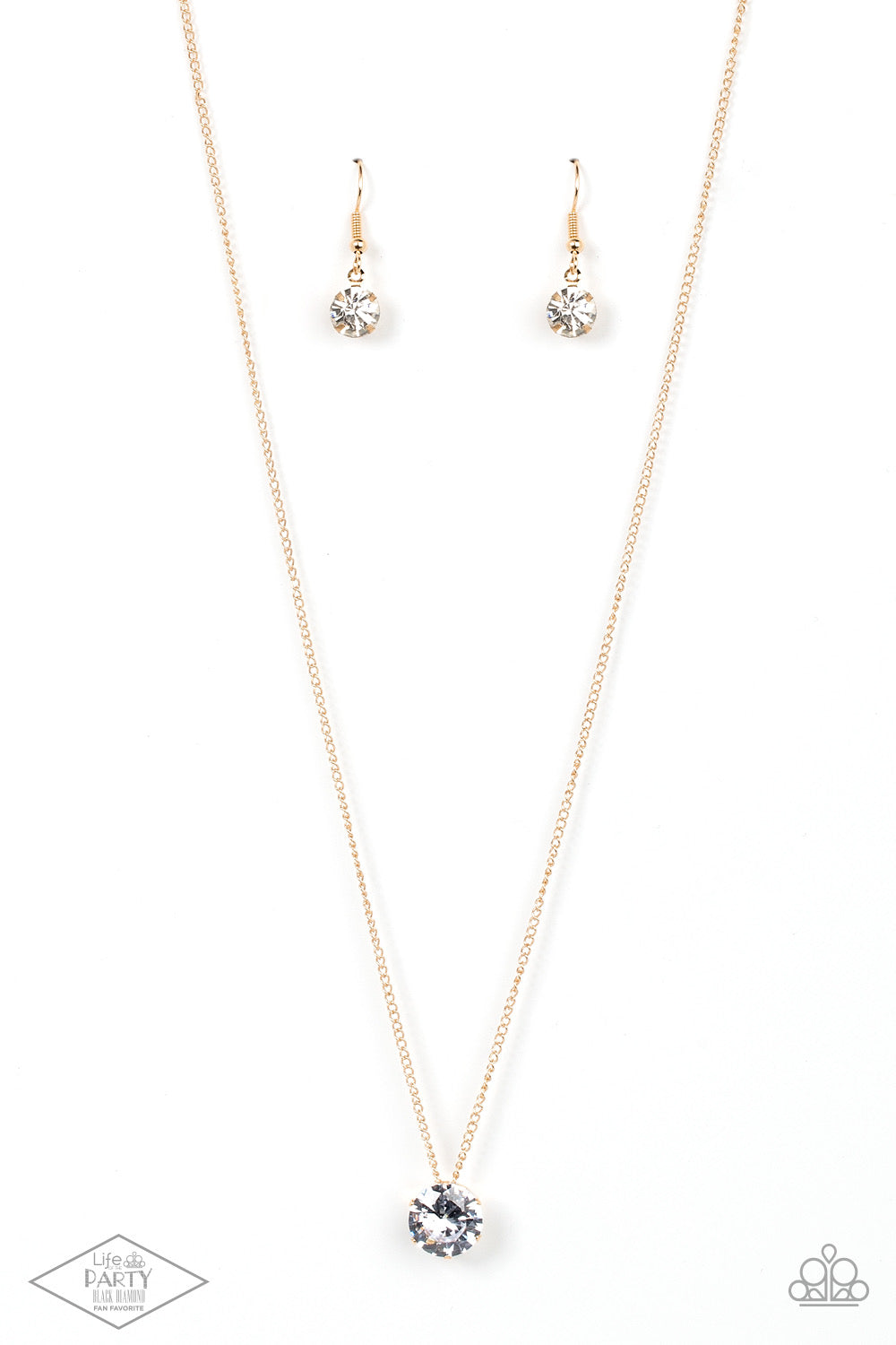 A single rhinestone sparkles brilliantly at the bottom of a dainty gold chain, creating a stunning solitaire design. Features an adjustable clasp closure.