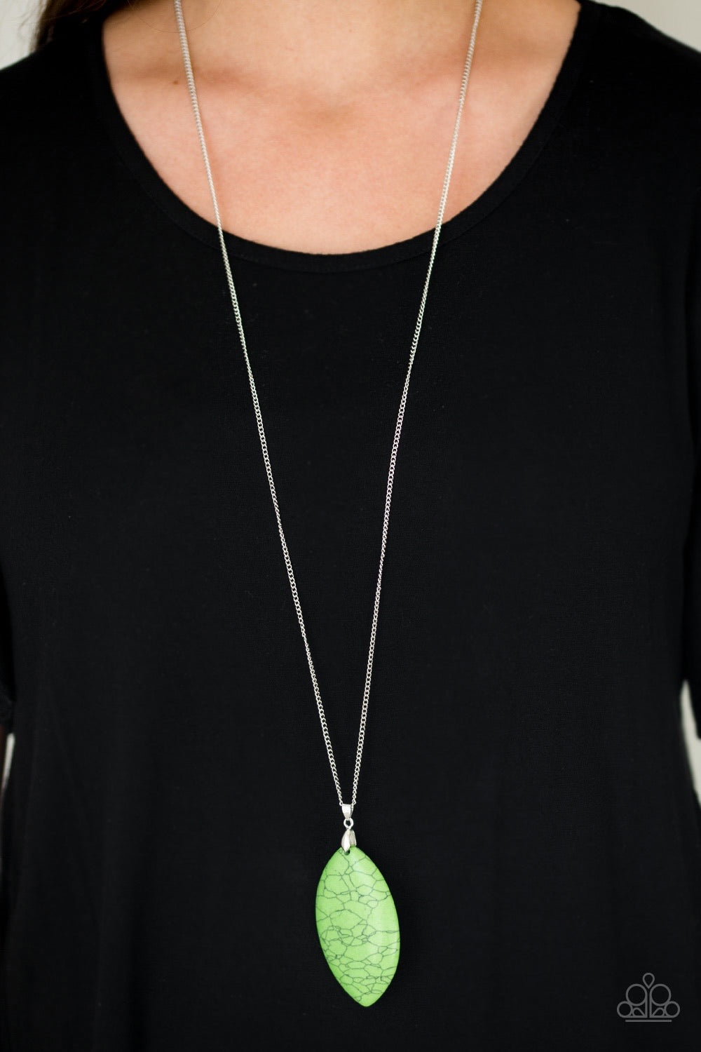 Chiseled to a tranquil almond-shape, an oversized green stone pendant swings from the bottom of a lengthened silver chain in a seasonal fashion. Features an adjustable clasp closure.