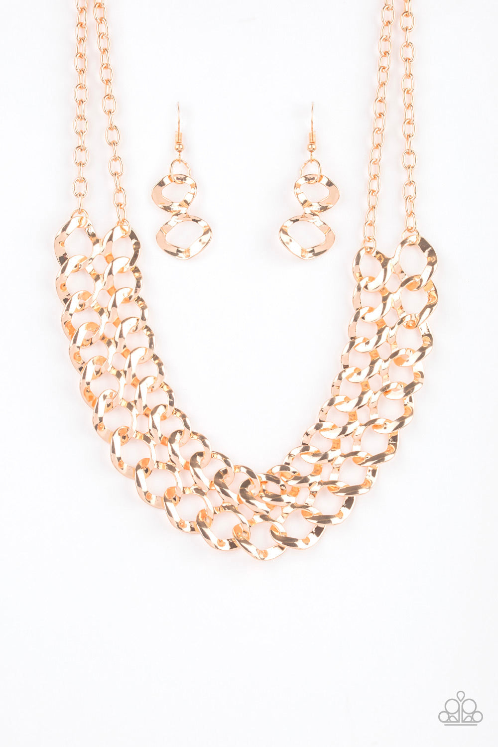 Asymmetrical gold frames connect below the collar, creating a bold web-like fringe for a statement-making look. Features an adjustable clasp closure.
